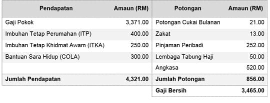 Potongan wajib yang diambilkira adalah seperti berikut: